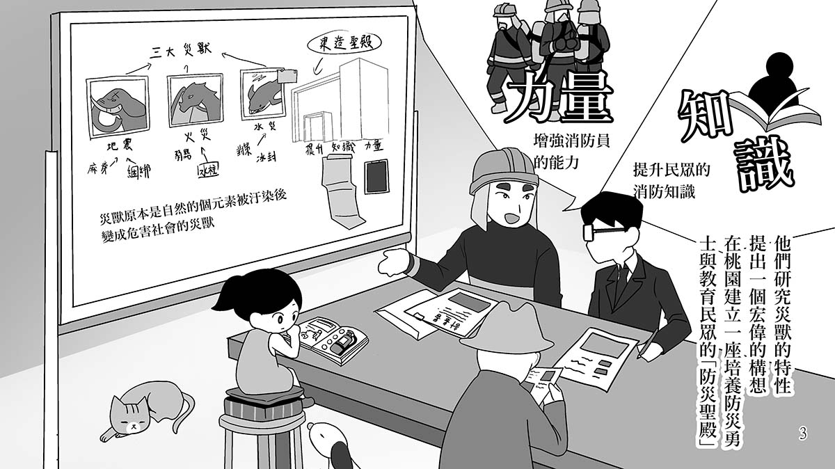 集結消防局內部防火、防災、訓練、營繕、資通訊及救護救災等相關專業同仁組成專案小組,並與展示裝修、建築、多媒體、模型、空調、監控及藝術創作等廠商,組成跨域團隊,共同規劃籌備訓練中心及防災教育館空間軟硬體。專案小組蒐集各種需求、決定優先順序、整合後轉換成需求書與工程語言。